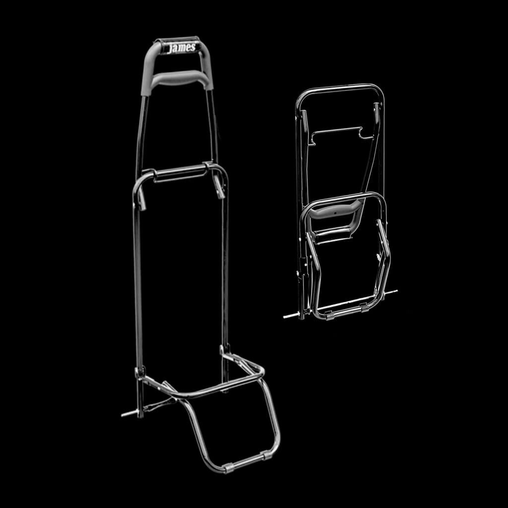 Wenn das bisherige Gestell deiner James-Box silbergrau oder schwarz war, am Rücken 25cm breit, und Räder mit 15cm Durchmesser hatte, dann hast du wahrscheinlich eine "Classic"-Box**, die nun auf folgende Ersatz-/Folgegestelle passt: